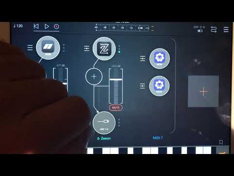 • I've got a controller keyboard connected by 5-pin MIDI into my audio interface, transmitting on Channel 1 into the iPad by USB